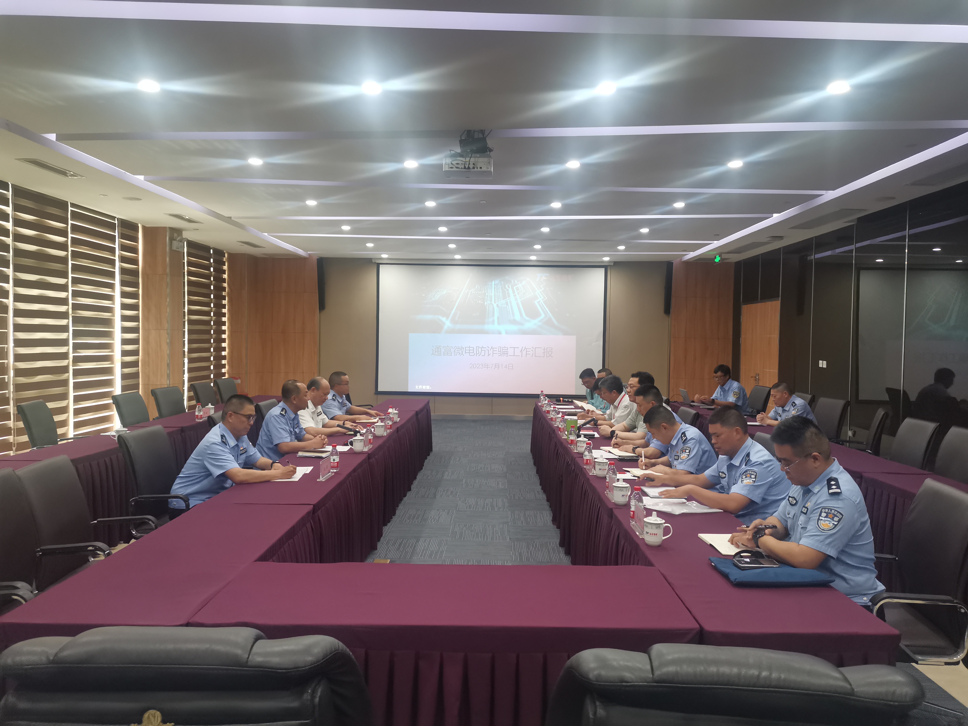 7月14日下午,南通市公安局党委委员、副局长顾坚率南通公安内保支队、崇川区公安分局、狼山派出所领导一行莅临公司调研反诈宣防工作。